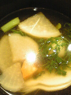 汁も餅が入って、大根人参筍がほんま美味しいvV