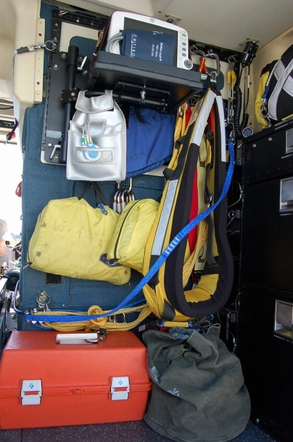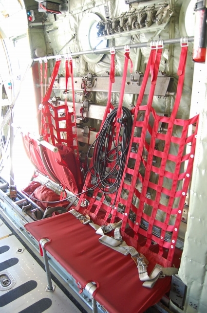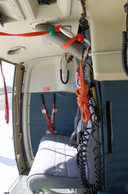 『メ/イ/プ/ル』さんは、ド/ク/タ/ー/ヘ/リの役目もするらしいので、後部には担架があったりド/ク/ターやナ/ース、付添い人が乗る椅子も付いとったり。