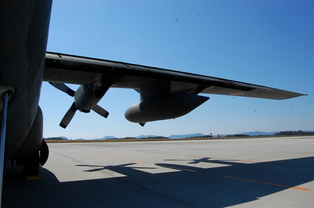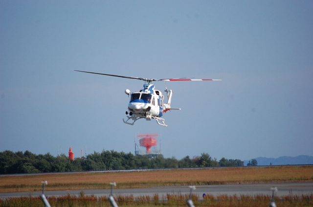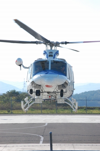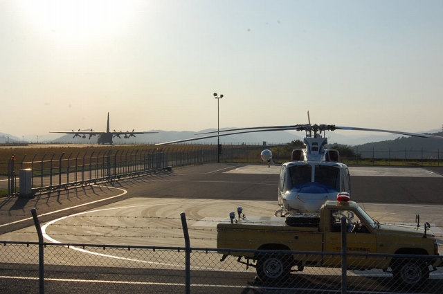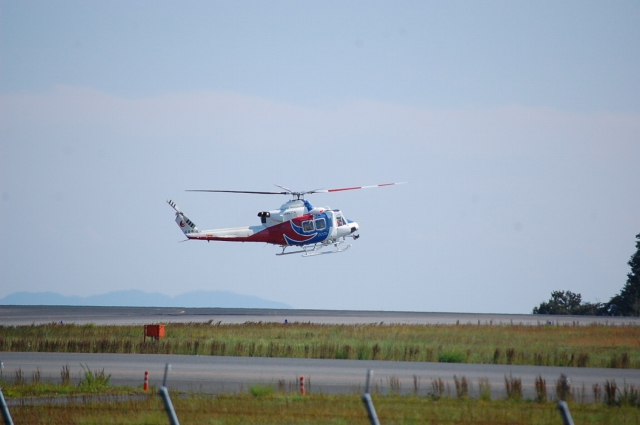 あんまりお仕事の邪魔をしてもいけんので、お礼を言ってスゴスゴとセンター出たとこで、プロペラ音!