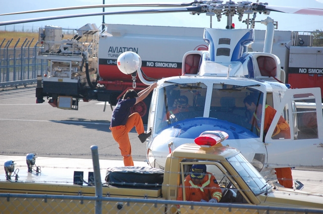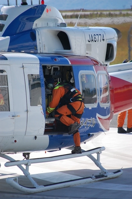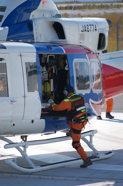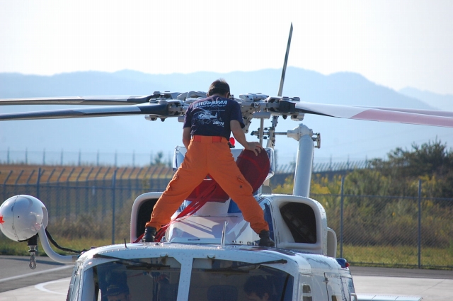 隊員さん自体は、消/防からの出向らしいんじゃけど、ヘリ/パイや整備士さんは民間からの出向なんじゃって。