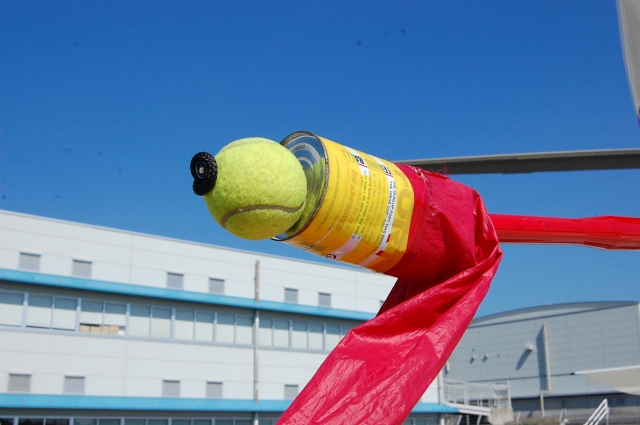 尻尾の出っ張りの先にカバーで被せてあったテニスボール付きの缶カン。