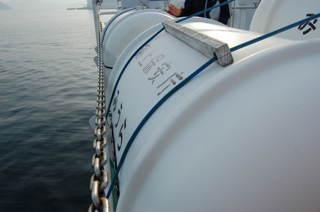 救/命/ボートは、ひっくり返っても元に戻るようになっとるそうです。フムフム