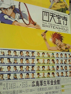 てな訳で、15日日曜日は四天ホー寺公演始まって初めての今回のテニム見てきました。